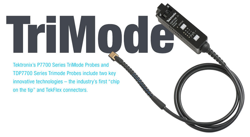 In response to these challenges, Tektronix introduced the P7700 Series TriMode Probes and TDP7700 Series Trimode Probes. These new probes include two key innovative technologies – the industry’s first “chip on the tip” and TekFlex connectors.