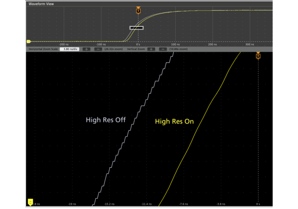 Previous-generation MSOs required tradeoffs, with digital channels having lower sample rates or shorter record lengths than analog channels. The 6 Series MSO offers a new level of integration of digital channels. Digital channels share the same high sample rate (up to 50 GS/s), and long record length (up to 1Gpoints) as analog channels.