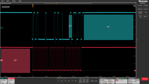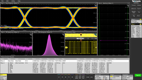 The massive display also provides plenty of viewing area not only for signals, but also for plots, measurement results tables, bus decode tables and more. You can easily resize and relocate the various views to suit your application.