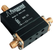 The PSPL5530B is a broadband coaxial bias insertion tee for low current applications such as biasing avalanche photo diodes. It is rated for 200 V. It is designed to pass fast rise time pulses with minimum waveform distortion. The rise time is 35 ps, with a -3 dB bandwidth extending from 20 kHz to 12.5 GHz.