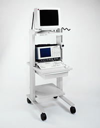 The K4000 Mobile Workstation provides convenient instrument transportation while adding valuable workspace for those crowded labs. This compact three-shelf cart is based on the sturdy K400 Series architecture, able to support a varied combination of instruments, PC, printers, and/or display monitors up to 21 in. Key enhancements feature an extended middle shelf for comfort and space when using a keyboard and mouse with Window-based instrumentation. Bonus items include a skyhook for probe cable management, monitor clips, and instrument brackets for stability and a storage drawer.