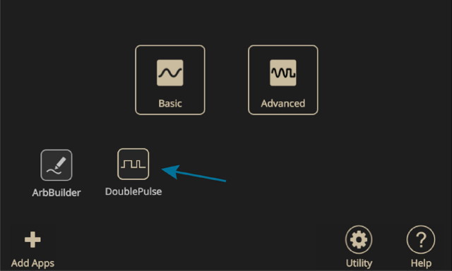 The AFG31000 Double Pulse Test Application can be downloaded directly from the tek.com website and installed onto the AFG31000. Figure 16 shows the Double Pulse Test icon on the home screen of the AFG31000 after the application is downloaded and installed on the unit.