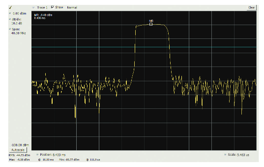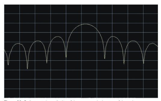 However, initially it was only known that every four seconds or so the radar experienced errors. Figure 30 shows the spectrum as measured by an ordinary spectrum analyzer or VSA. Only the outline of the sine(x)/x pulse spectrum is visible. If the radar could be turned off other signals might be seen, but in this case the interference was only present for limited periods of time, so the radar would need to be turned off for several days.