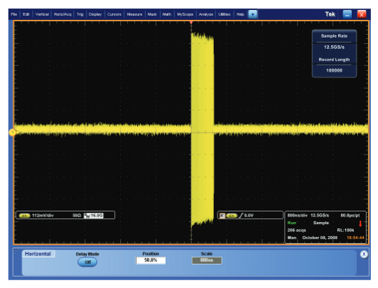 Just like the RSA, the pulse measurements are performed on data in the acquisition memory on a continuous capture/ analyze cycle, or on waveforms stored on the instrument hard disk drive.