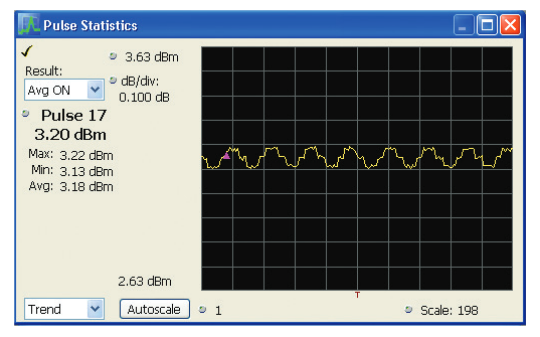 Some of the measurements are specifically for chirped pulses, including Frequency Deviation, Frequency Error, Phase Deviation and Phase Error. Any of the parameters with a numeric result can also have these results plotted versus pulse number, giving visibility of time-trends of errors. And lastly, these trends can be input to an FFT to determine if the errors have a coherent frequency of error variation, possibly leading to discovery of the cause of the variation.