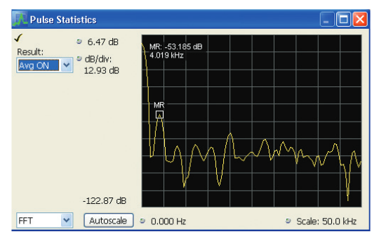 Selecting “FFT” instead of “Trend” in the drop-down box in the lower left of Figure 23 brings up the frequency spectrum of the measured parameter. The spectrum plot distinctly shows a peak disturbance at 4 kHz, which is 53 dB below the average value of the amplitude. Something is modulating the pulse power at a 4 kHz rate. The frequency of the disturbance can assist in the troubleshooting of components or subsystems within the radar causing this problem.