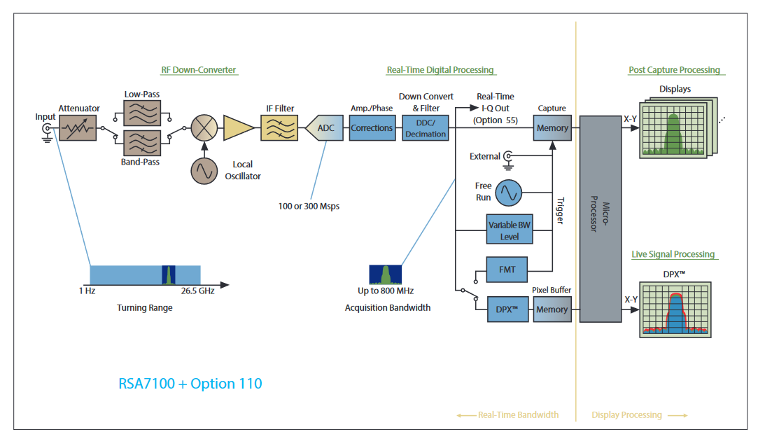 | RSA7100A | 16 kHz to 14.2/26.5 GHz | 320 MHz std; 800 MHz opt. |