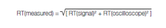 Rise time requirements for the oscilloscope depend on the rise time or slew rate of the signals to be measured. The following empirical formula gives the relationship between measured rise time [RT(measured)], oscilloscope rise time [RT(oscilloscope)] and signal rise time [RT(signal)];