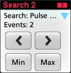 - If available for a search, tap the Min or Max button to center the waveform in the display at the minimum or maximum value of the search events in the waveform record.