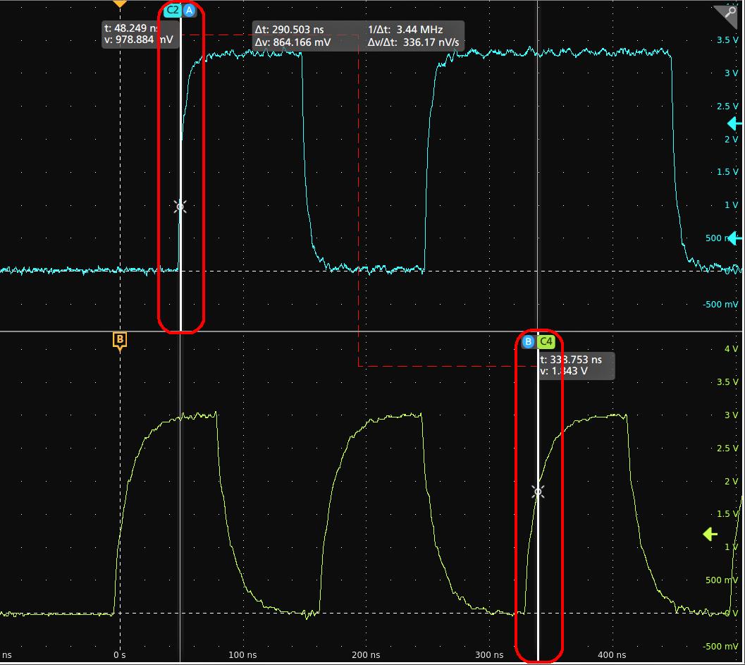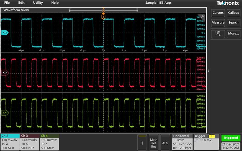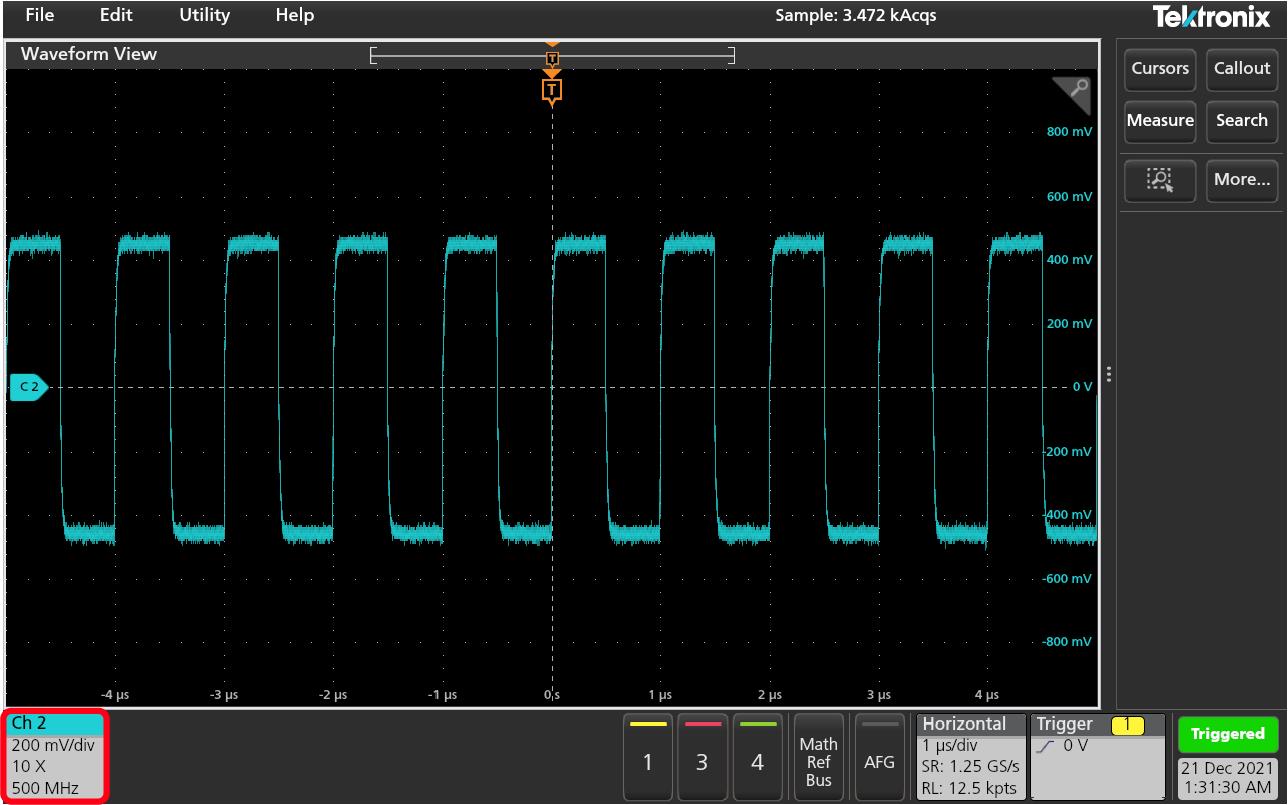 - To move the cursors to a different channel or waveform, just tap in that waveform graticule.