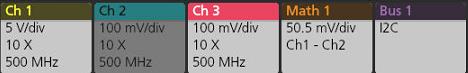 - Tap the waveform slice (in Stacked mode), or the channel or waveform badge (in Overlay mode) to which you want to add cursors.