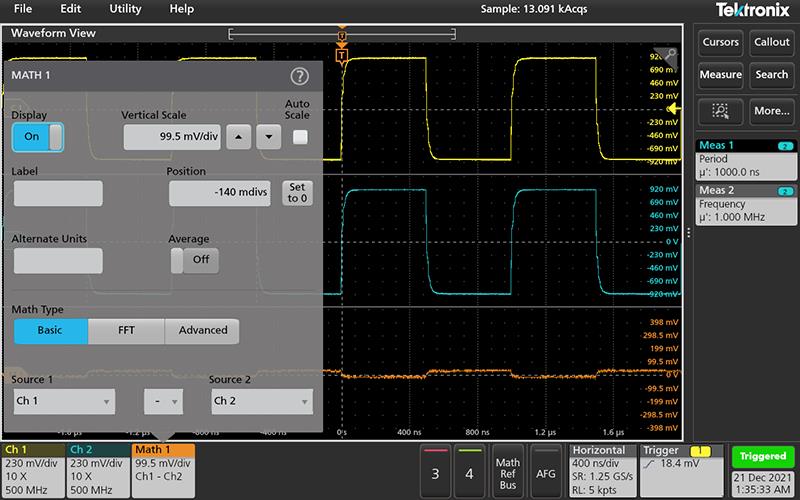 - Add a math, reference, or bus waveform