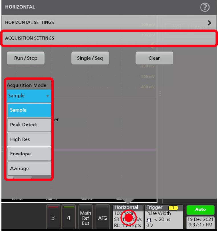- Set the acquisition mode