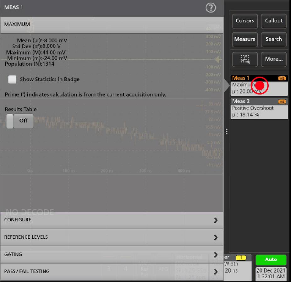 - To further adjust a measurement's settings, double-tap a measurement badge to open a configuration menu for that measurement. See Configure a measurement.
