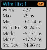 Measurement plots let you graph the distribution of waveform data point occurrences (histogram), plot the frequency components (spectrum) of a waveform, show the time trend of a measurement, display an eye diagram, and other supported plots. Available plots depend on the measurement.