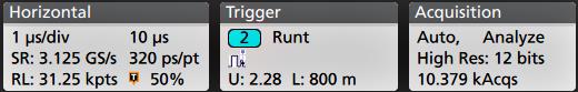 - To return the instrument to normal acquisition mode, tap the Zoom icon in the upper right corner of the Waveform View to turn off Zoom mode, and push the Run/Stop front-panel button to set it to Run mode.