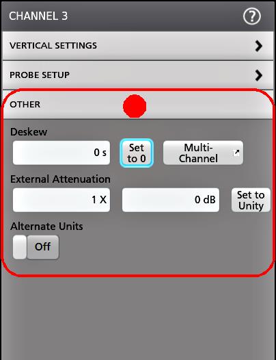 - Tap the Help icon on a configuration menu title for more information on math, reference, and bus waveform settings.