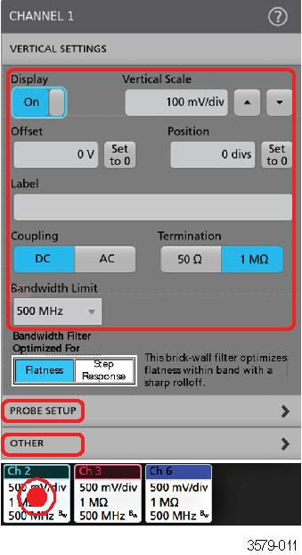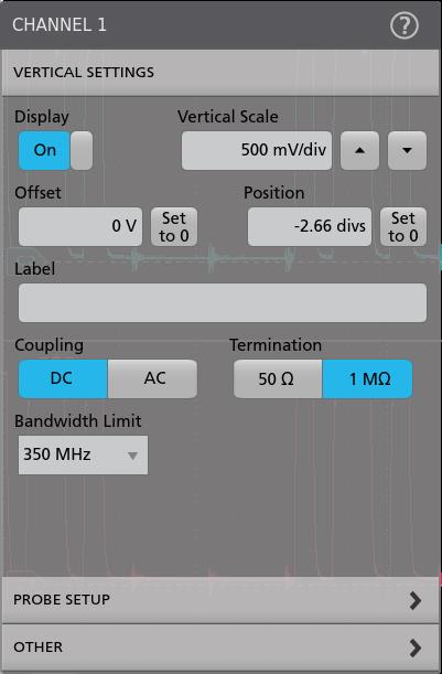 - Configure channel or waveform settings