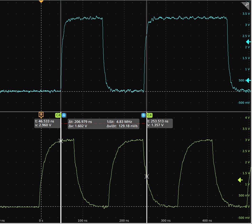 - To move the cursors to a different channel or waveform, just tap in that waveform graticule.