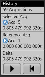 Note:Navigation buttons are only functional when the oscilloscope acquisition mode is set to Stop.This opens the Zoom mode and moves the waveform to the previous or next event mark on the waveform.