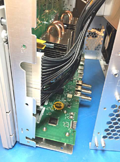 - Carefully rotate the Processor board 180° counterclockwise to get access to the cable connectors.