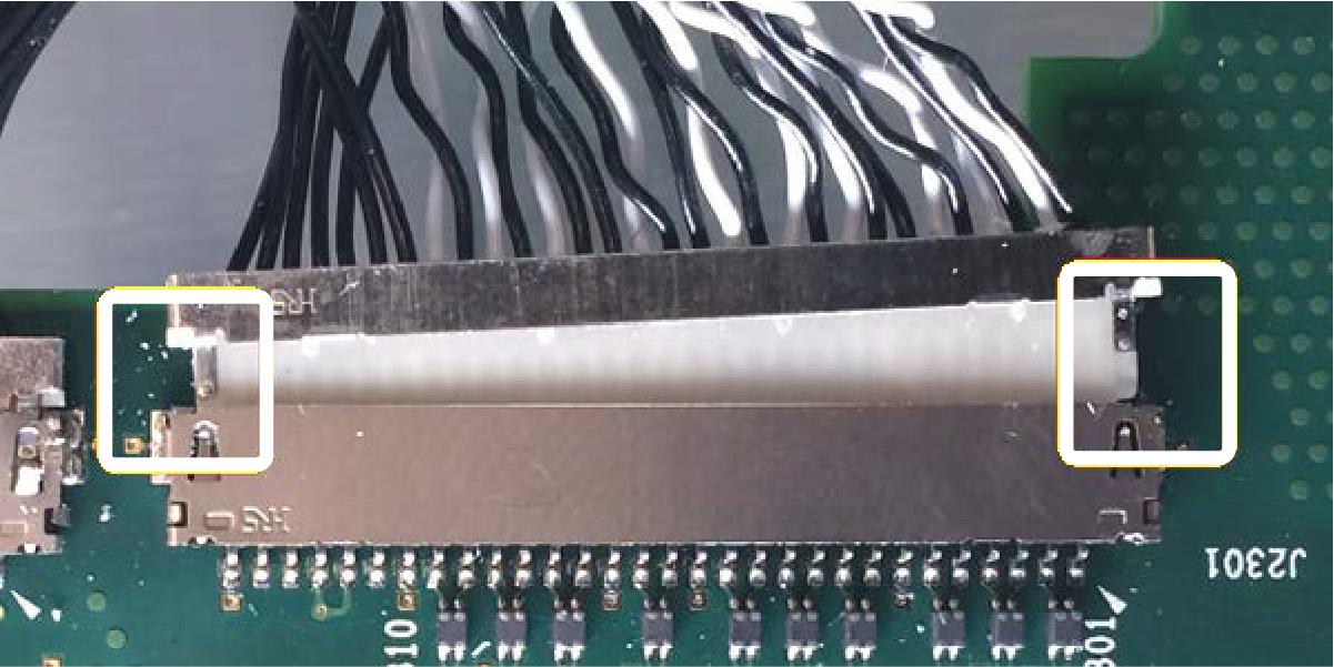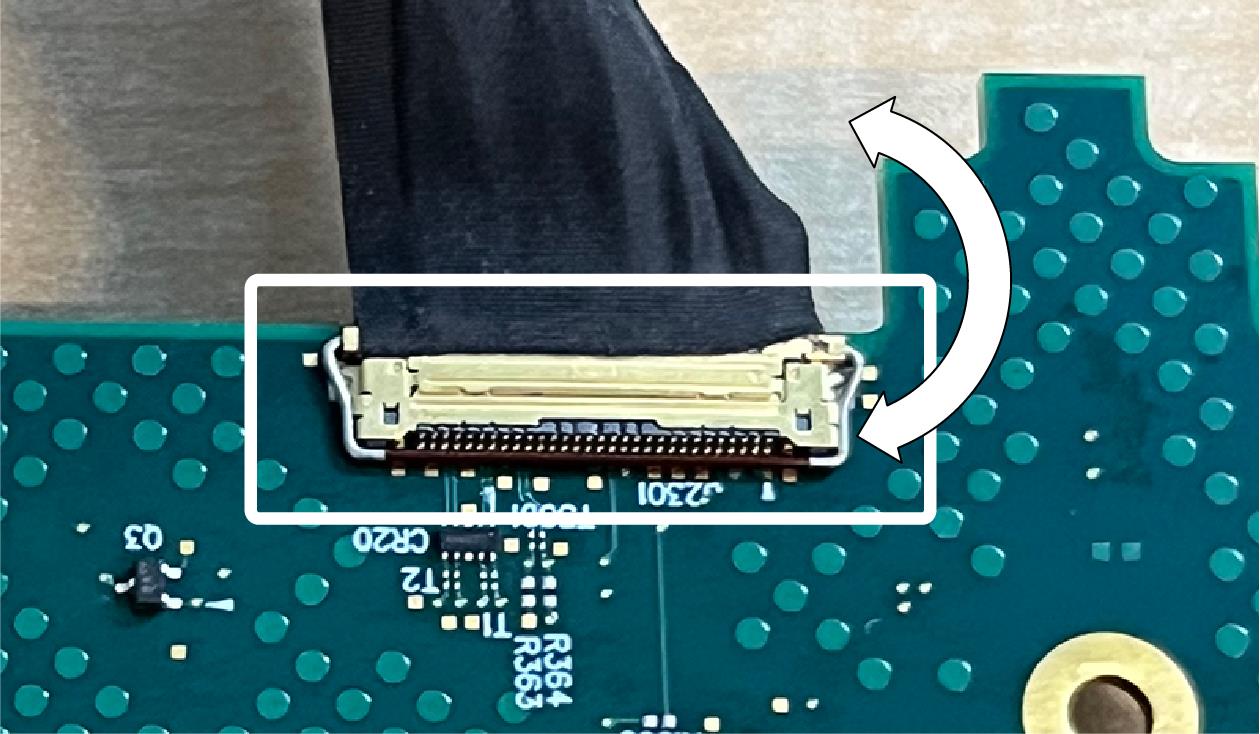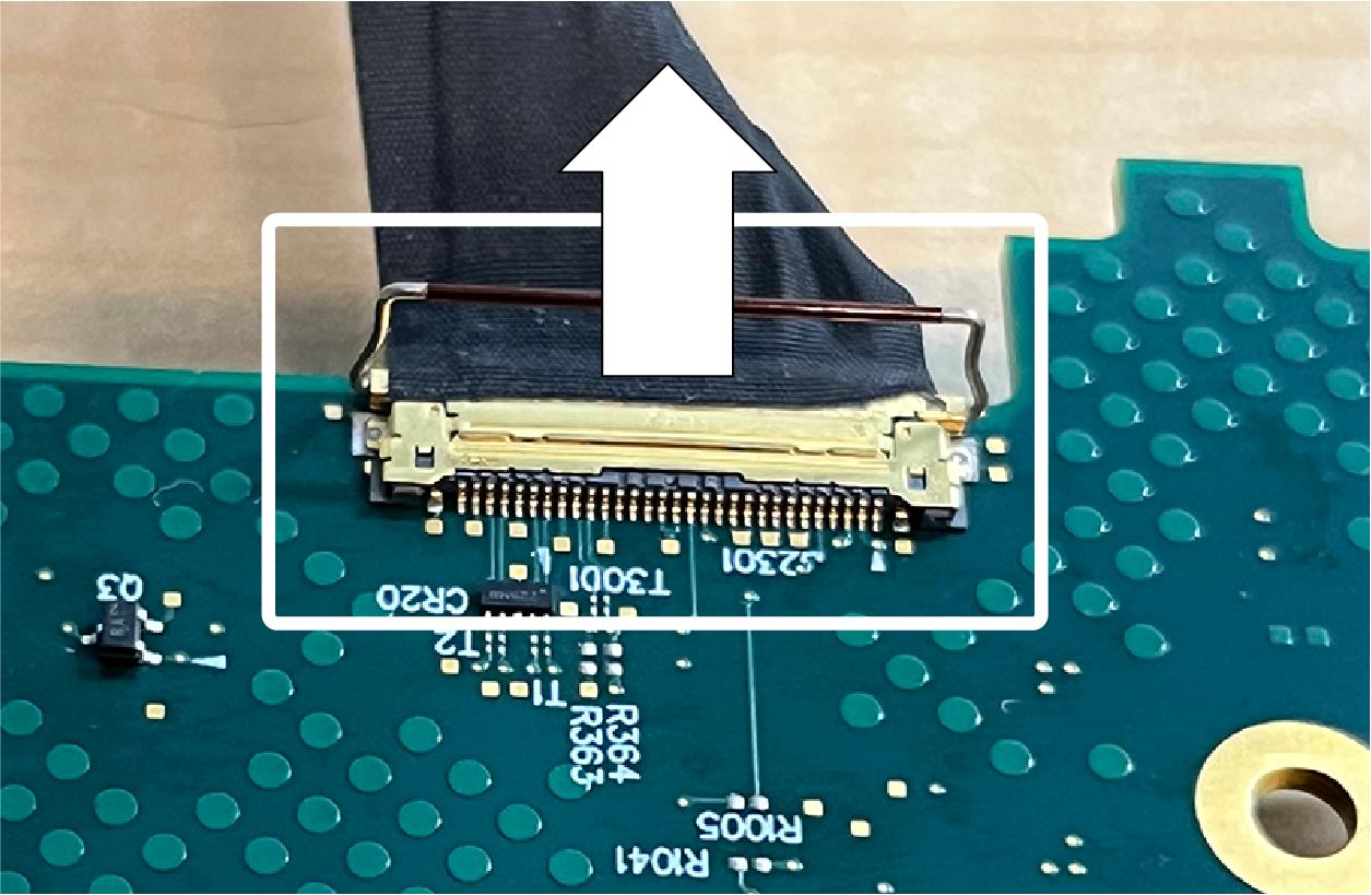 - Position your fingernails so that they are between the edge of the larger-size cable connector and its board connector.