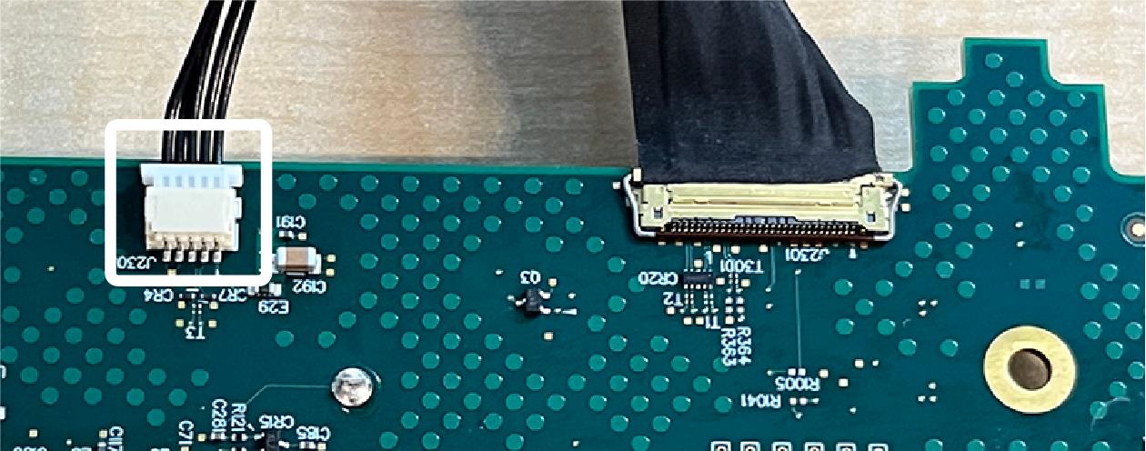 - Gently push and rock the cable connector side to side to move the wire connector out of the board connector.