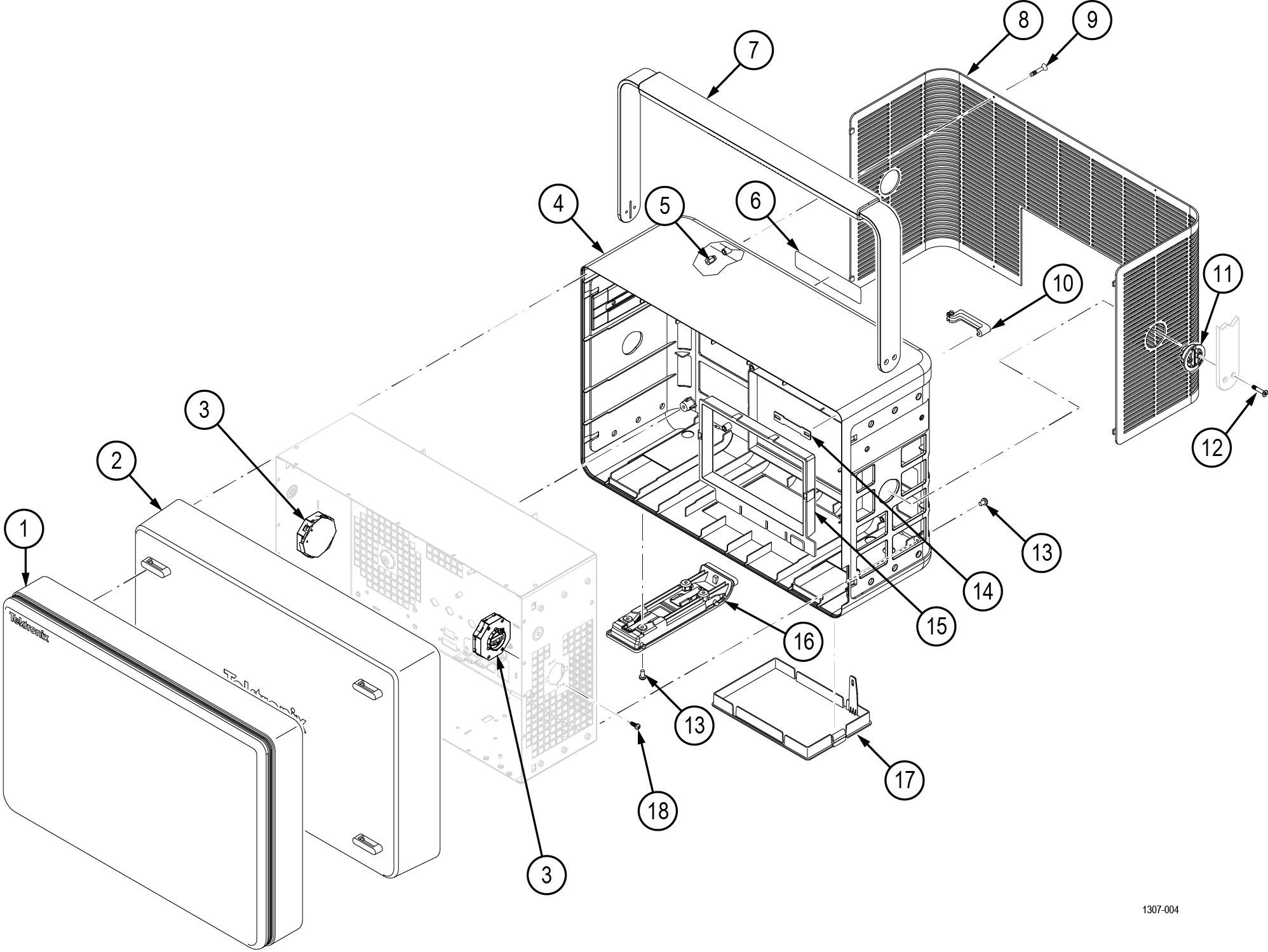 | -2 | 202-0582-XX | 1 | CASE, FRONT Return the instrument to Tektronix for service. |