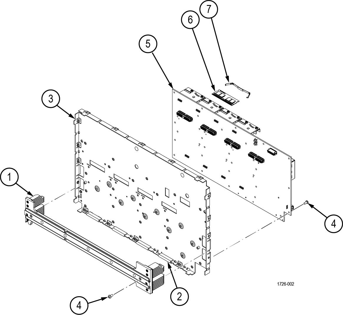 | -7 | 407-5956-XX | - | BRACKET, SO-DIMM RETENTION, ASSEMBLY Return the instrument to Tektronix for service. |