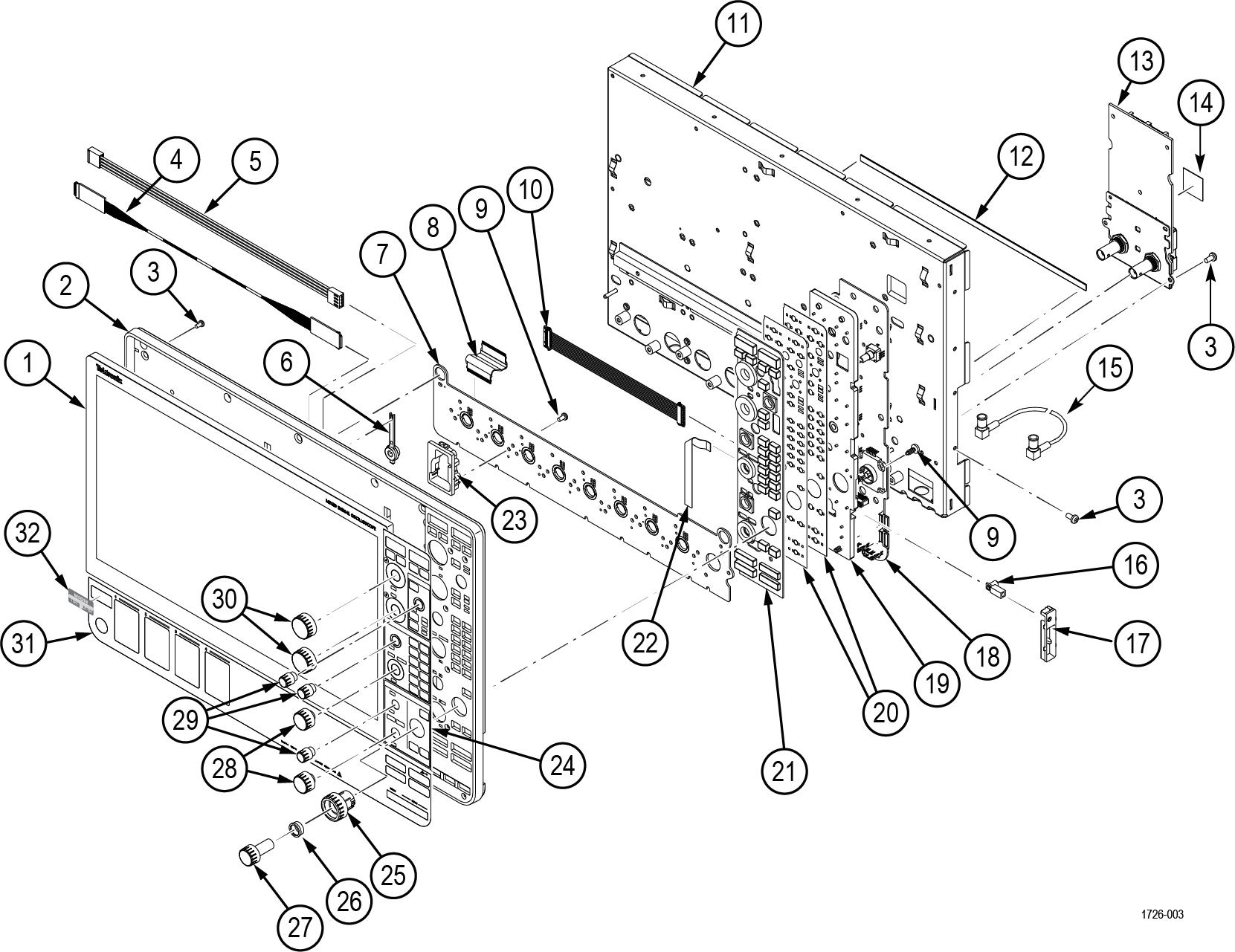 | -22 | 174-6880-XX | 1 | CABLE, FFC, FRONT-PANEL TO PIB Return the instrument to Tektronix for service. |