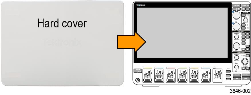 The oscilloscope front cover is packed inside the hard case. Remove the cover from its packing material and attach it to the instrument.