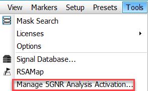 - On the Tools menu, click Manage 5GNR Analysis Activation…. The Manage 5GNR Analysis Activation dialog box appears.