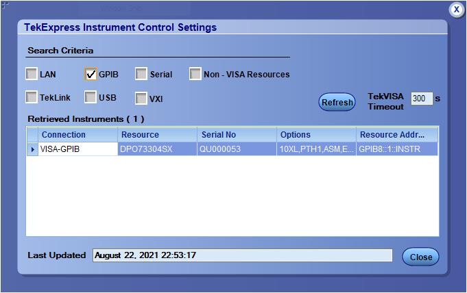 TEKEXP:LIST? INSTRUMENT,"Real Time Scope"\n | It returns "DPO77002SX (GPIB8::1::INSTR),MSO73304DX (TCPIP::134.64.248.91::INSTR)" when DPO72504D (GPIB8::1::INSTR), MSO73304DX (TCPIP::134.64.248.91::INSTR) are the list of available instruments. |