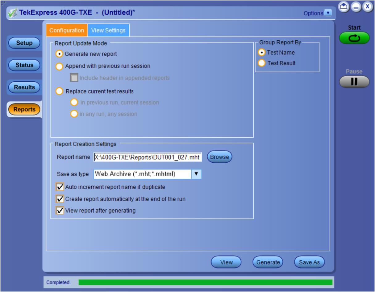 TEKEXP:REPORT GENERATE\n | It generates report for the current session. |