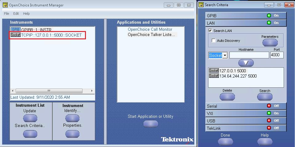 TEKEXP:LASTERROR?\n | It returns ERROR: INSTRUMENT_NOT_FOUND, when no instrument is found. |