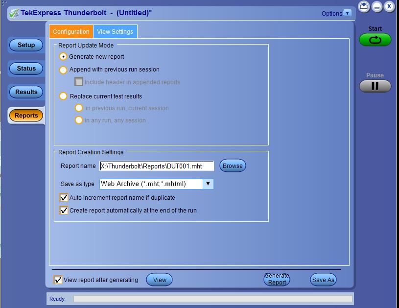 Test result reports (default) Test reports can also be saved in HTML format |