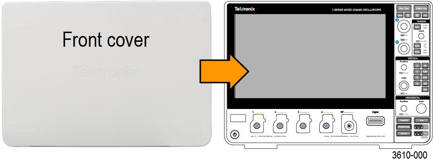 The oscilloscope front cover is packed inside the hard case. Remove the cover from its packing material and attach it to the instrument.