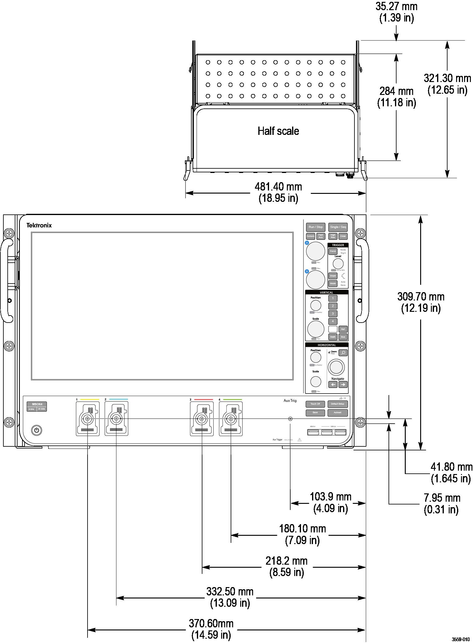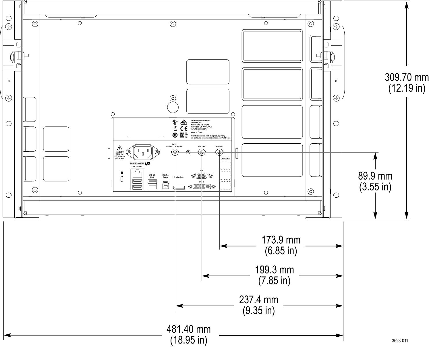 - A minimum width of 488 mm (19.2 in) between the left- and right-front rails in the rack. If possible, consider allowing at least 50.8 mm (2.0 in) on the right side and rear of the instrument for adequate airflow.