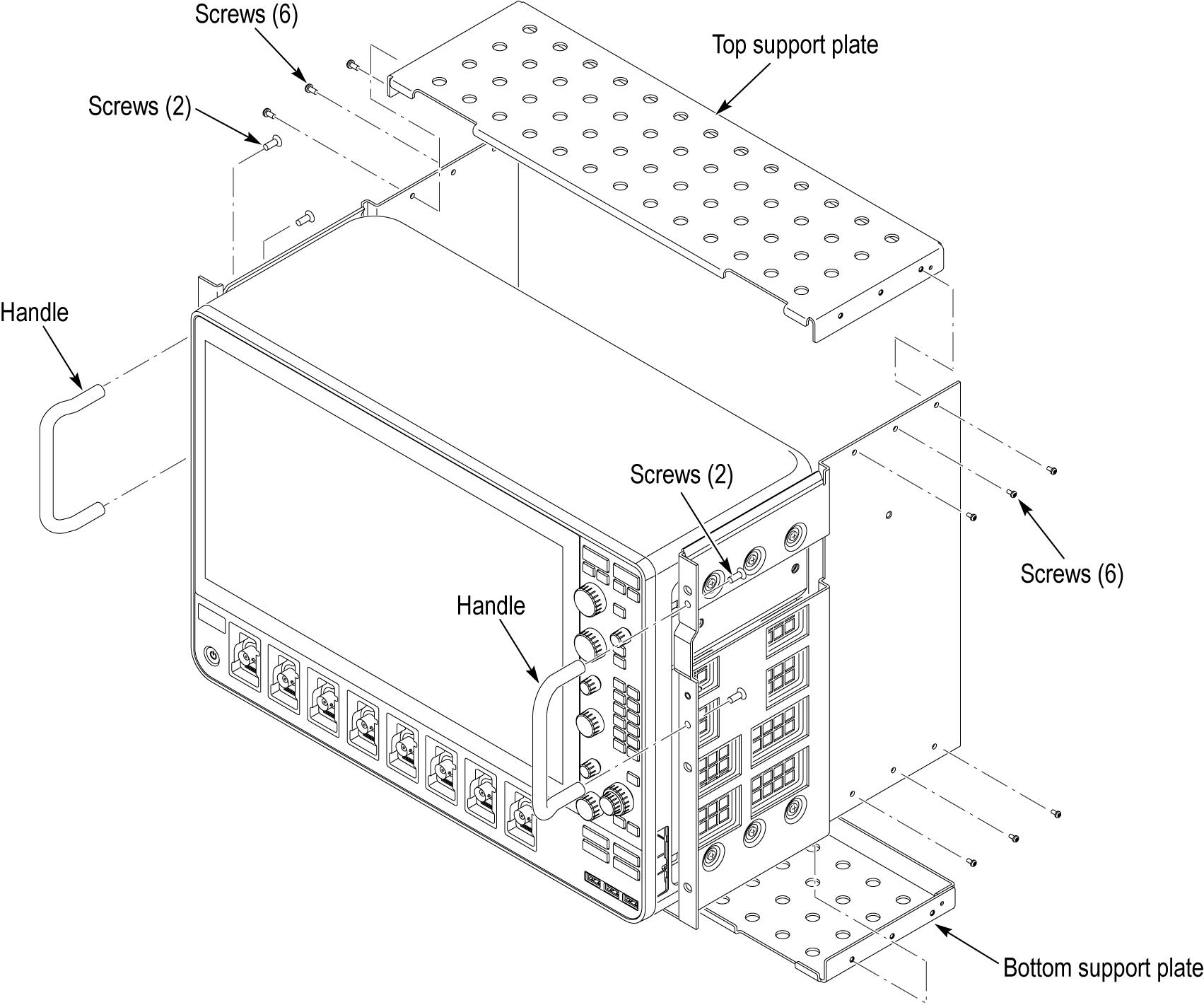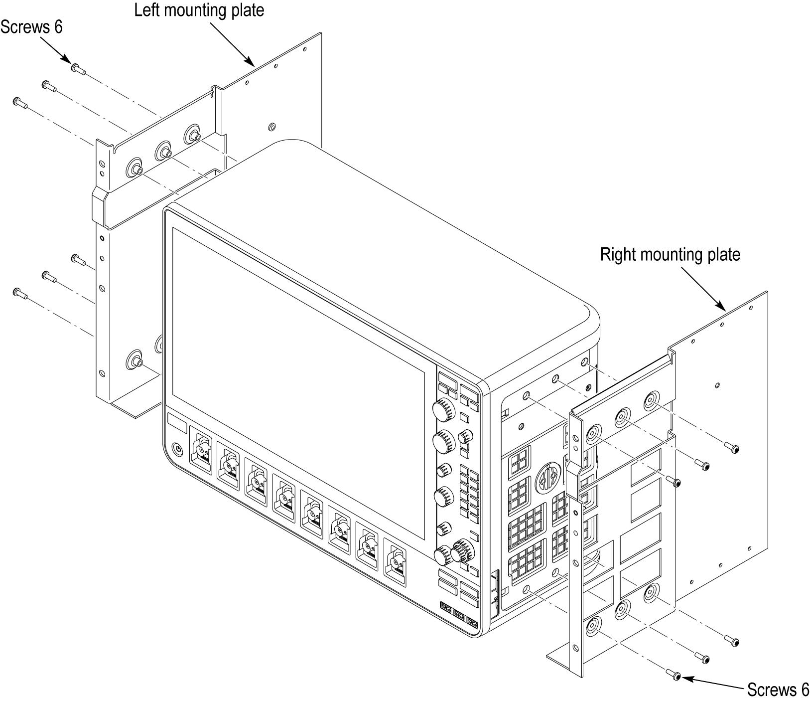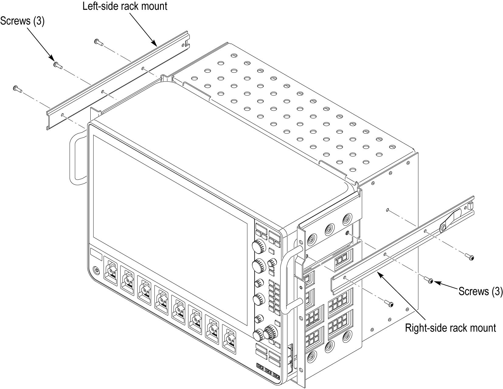 The rackmount kit is a collection of parts that, once installed, configure the instrument for mounting into a standard 19-inch equipment rack. This rackmount kit supports all 5 Series MSO (except 5 Series MSO Low Profile) and 6 Series MSO instruments.