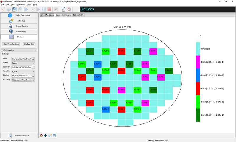 ACS Standard Edition software is also used on fully integrated and automated rack-based customized test systems for process control monitoring (PCM), wafer acceptance testing (WAT) and die sorting. Many of the tools and capabilities built into ACS Standard software enhance automated device characterization: