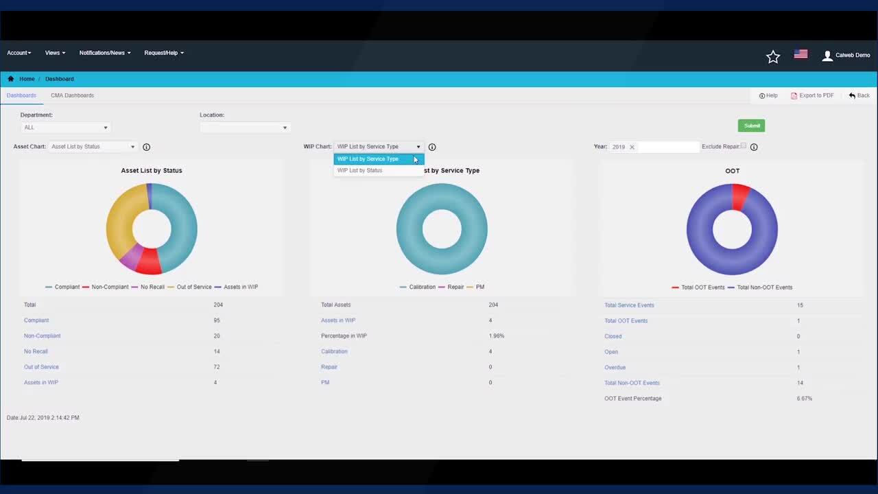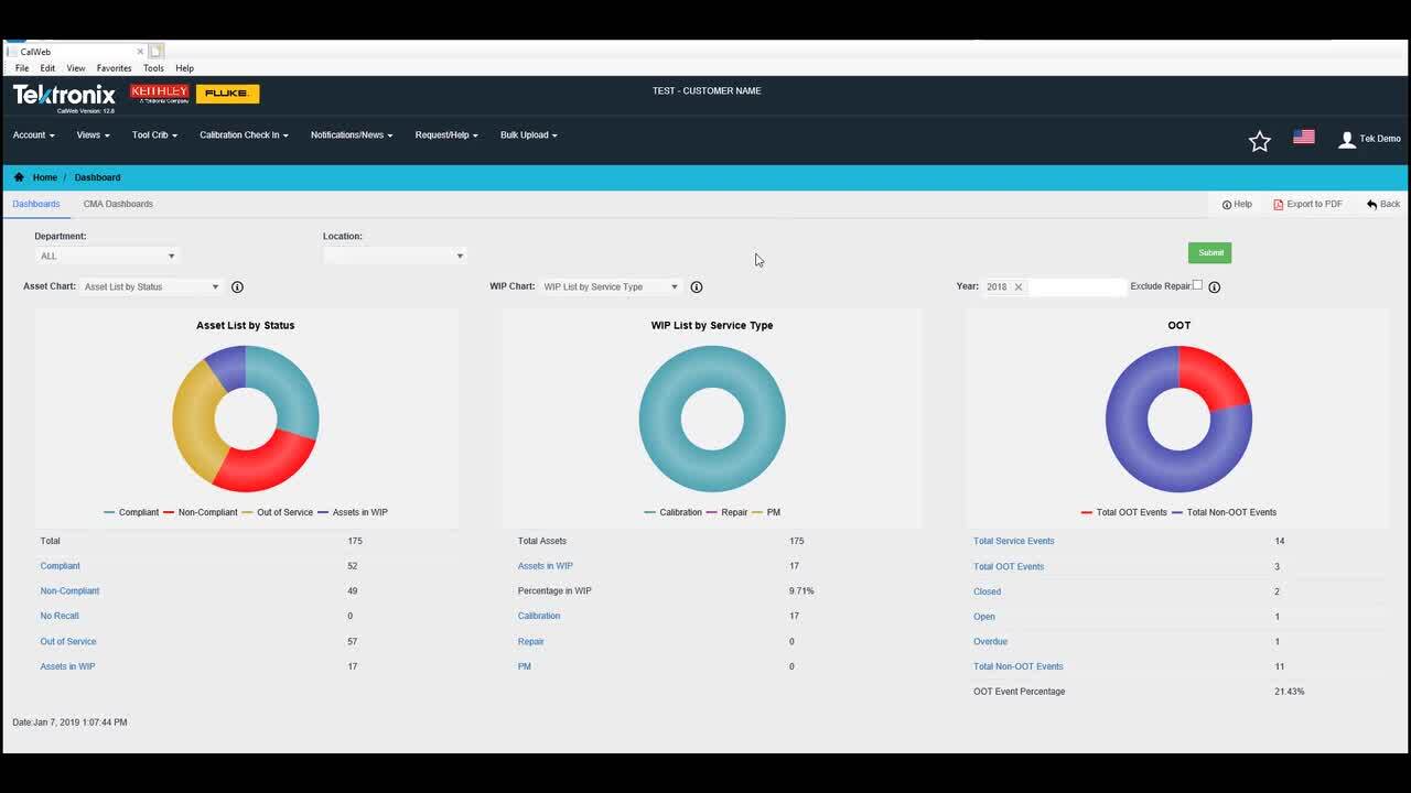 CalWeb’s reporting tool makes it easy for you to understand the important trends of your calibration service program.