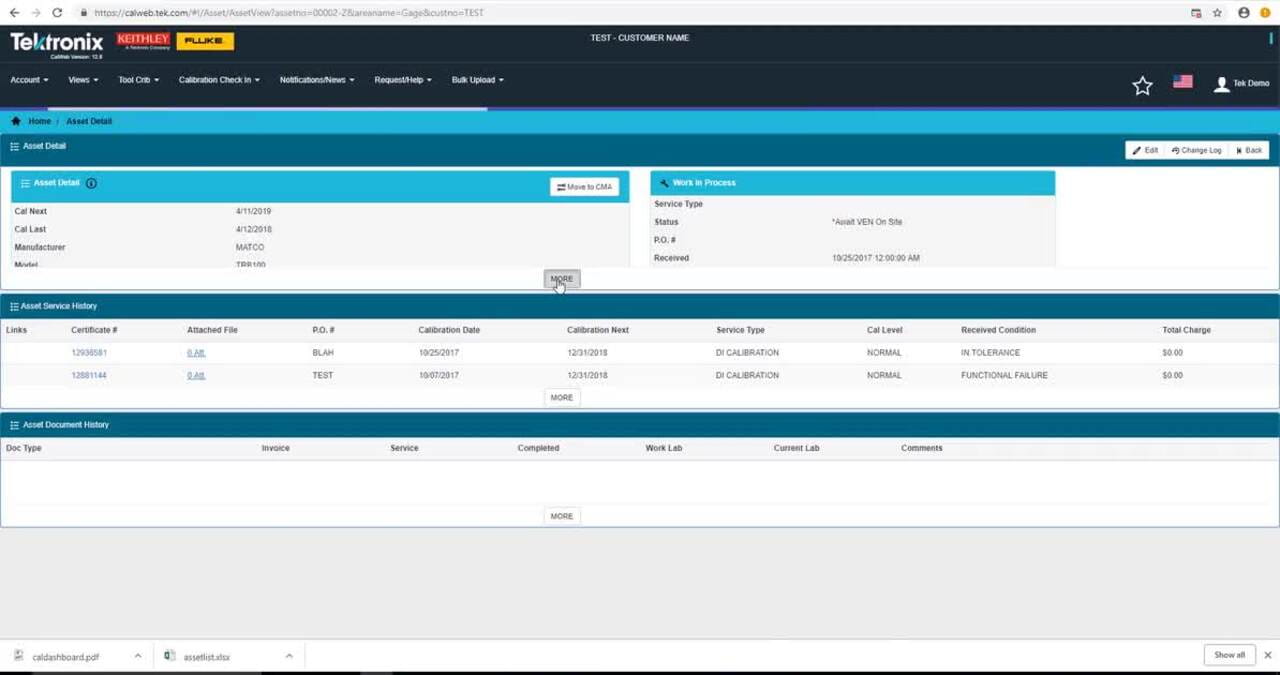 • Bonded Assets: Easily track preventative maintenance on your assets serviced by Tektronix